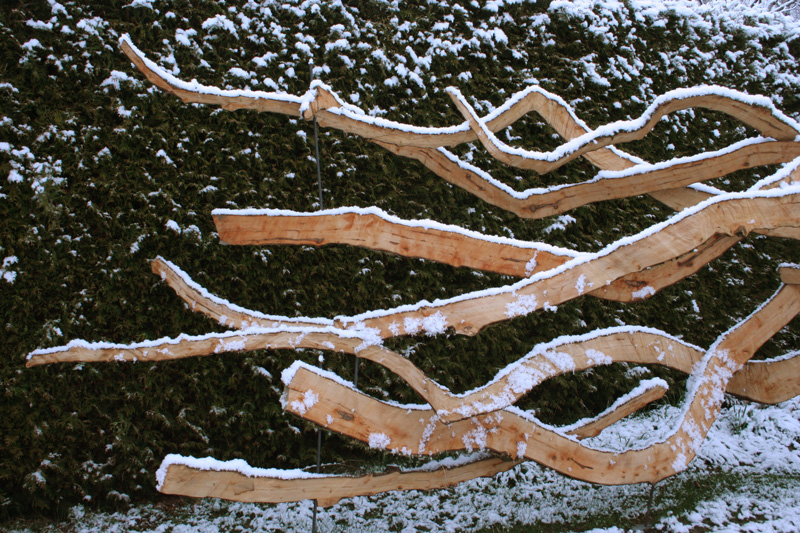 | Torques Landmark, Durchmesser 11m, Hainbuchenpfosten, Kunst in der Natur am Wachtberg, Gars a. Kamp, NÖ, 2008 |